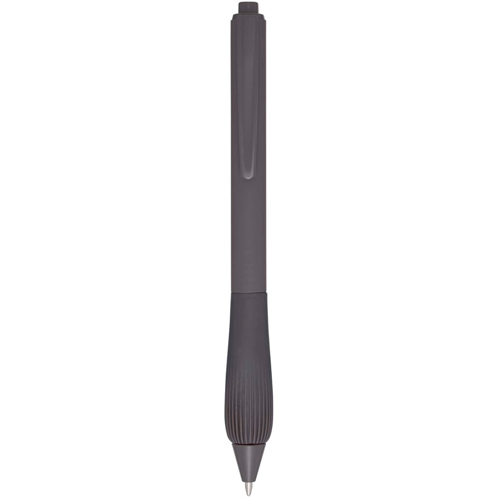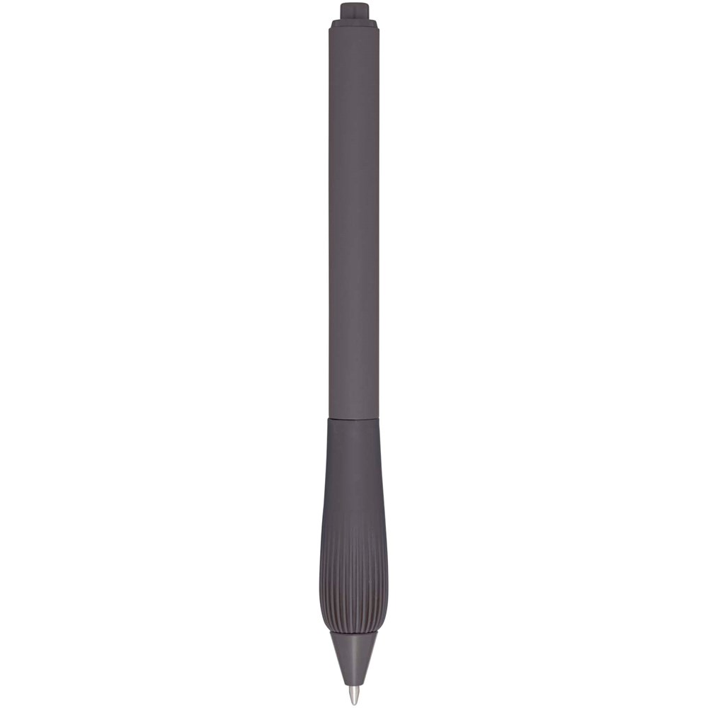Kugelschreiber aus recyceltem Kunststoff mit gummiertem Schaft und Griff aus TPR. Tintenfarbe: Blau. Schreiblänge: 1000 Meter. Strichstärke: 1,0 mm.