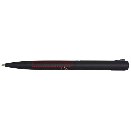 Kugelschreiber, dessen oberer Schaft aus recyceltem Kunststoff und dessen unterer Teil aus recyceltem Aluminium besteht. Der Clip besteht aus Eisen. Tintenfarbe: Blau. Schreiblänge: 1000 Meter. Strichstärke: 1,0 mm.