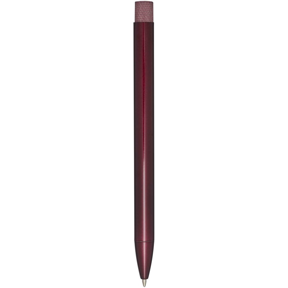 Kugelschreiber mit farbiger Sprühbeschichtung. Der Knopf und die Spitze sind aus Messing, der Schaft aus recyceltem Messing und der Clip aus Eisen. Tintenfarbe: Blau. Schreiblänge: 1000 Meter. Strichstärke: 1,0 mm. Geliefert in einer Geschenkbox.