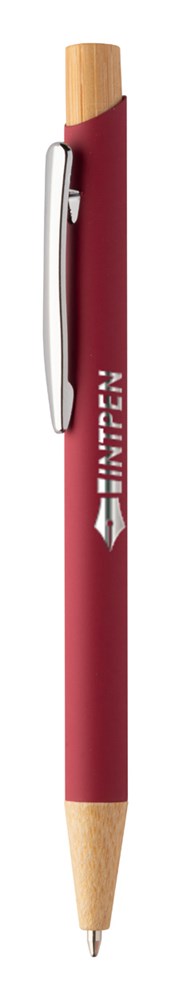 Kugelschreiber aus recyceltem Aluminium mit Bambus-Elementen, gummierter Oberfläche und verchromten Clip. Mit Spezialbeschichtung für Spiegelgravuren. Blauschreibend.