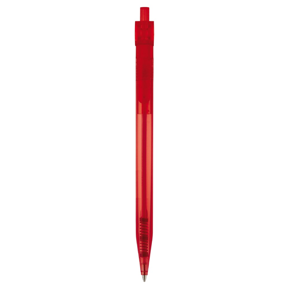 Kunststoff Toppoint Kugelschreiber mit flachem Clip. Made in Germany. Ausgestattet mit einer X20-Mine für 2,5km Schreibleistung. Mine blauschreibend. Transparent.