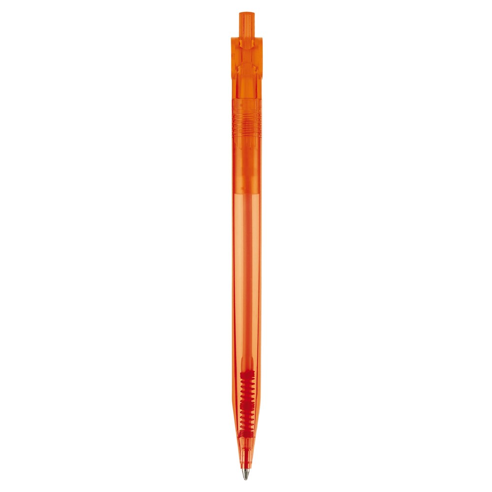 Kunststoff Toppoint Kugelschreiber mit flachem Clip. Made in Germany. Ausgestattet mit einer X20-Mine für 2,5km Schreibleistung. Mine blauschreibend. Transparent.