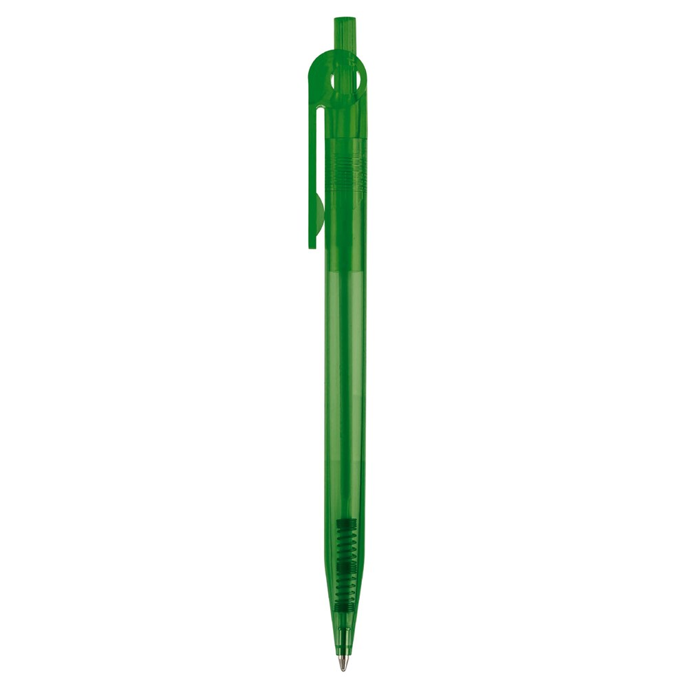 Kunststoff Toppoint Kugelschreiber mit flachem Clip. Made in Germany. Ausgestattet mit einer X20-Mine für 2,5km Schreibleistung. Mine blauschreibend. Transparent.