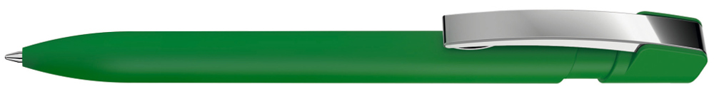 Druckkugelschreiber mit Softtouch-Gehäuse und flexiblem Metallclip.