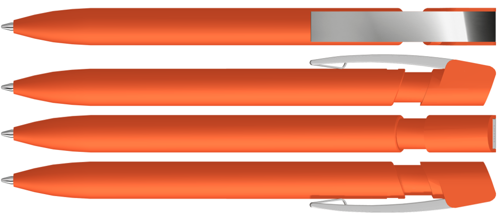 Druckkugelschreiber mit Softtouch-Gehäuse und flexiblem Metallclip.