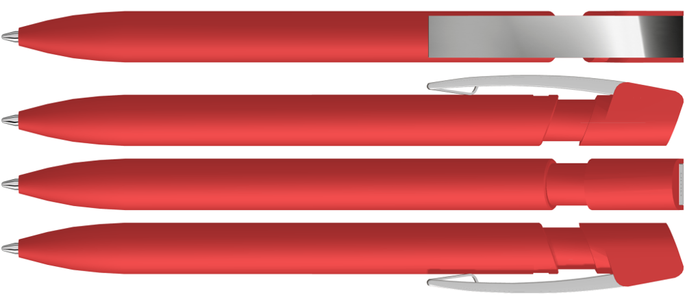 Druckkugelschreiber mit Softtouch-Gehäuse und flexiblem Metallclip.
