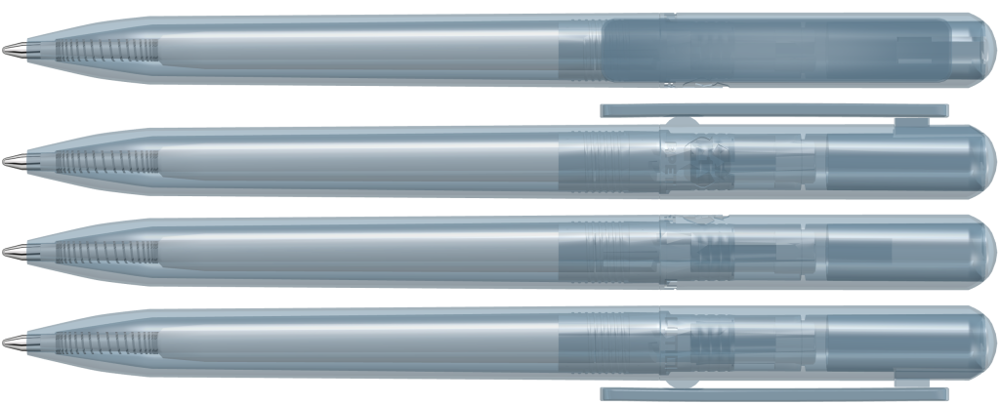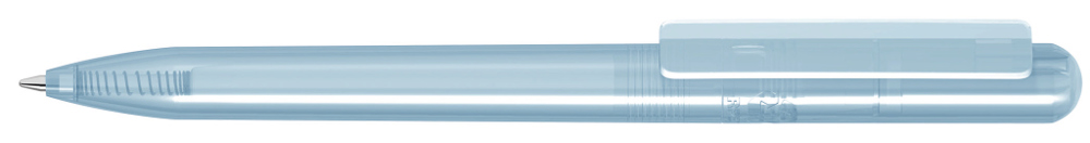 Drehkugelschreiber aus recyceltem PET-Material mit transparent glänzendem Gehäuse.