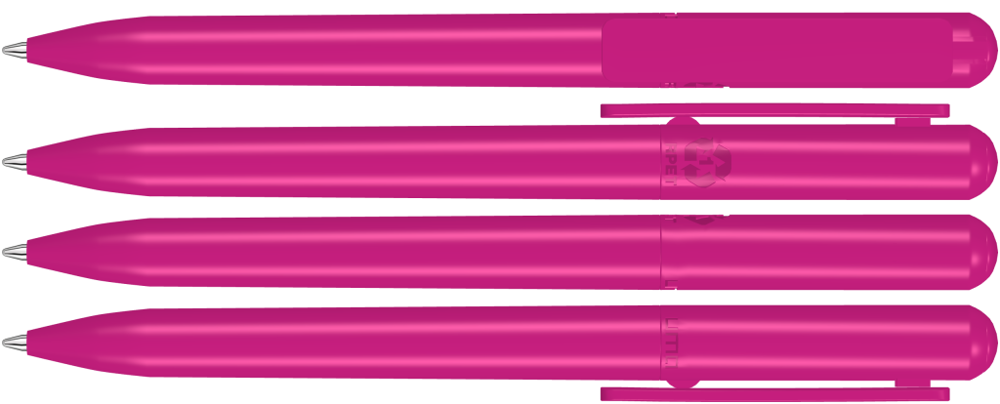 Drehkugelschreiber aus recyceltem PET-Material mit gedeckt glänzendem Gehäuse.