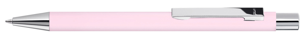 Metall-Druckkugelschreiber mit Softtouch-Gehäuse, Metallclip, Metallspitze und Drücker silber glänzend.
