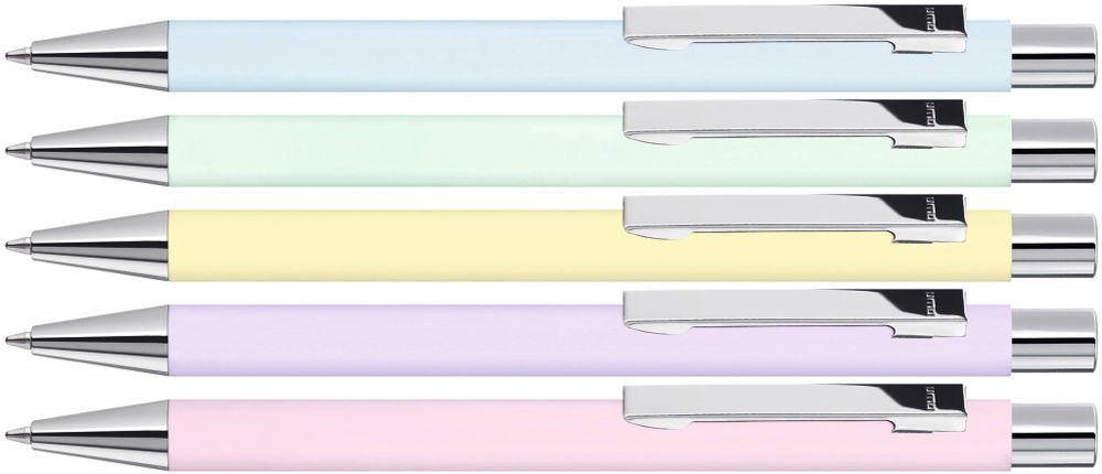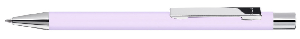 Metall-Druckkugelschreiber mit Softtouch-Gehäuse, Metallclip, Metallspitze und Drücker silber glänzend.