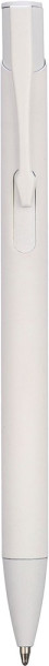 Kugelschreiber aus recyceltem Aluminium mit einer gummierten Beschichtung auf dem Gehäuse. Der Clip, die Spitze und der Drücker sind in der gleichen Farbe. Der Clip ist aus Metall und die Spitze aus Kunststoff. Ca. 800 Meter Schreiblänge. Inklusive graviertem Recyceltes-Aluminium-Logo. Blaue Tinte.