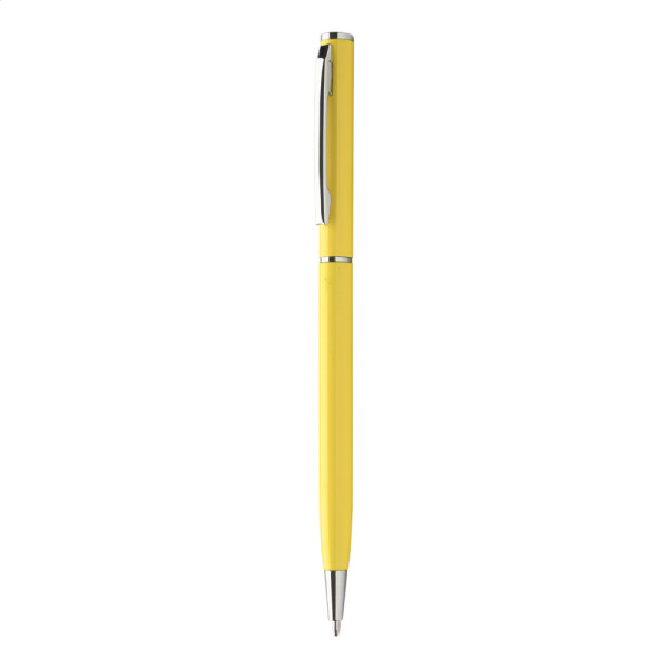 Drehkugelschreiber aus recyceltem Aluminium mit verchromten Elementen, blauschreibend. mehr