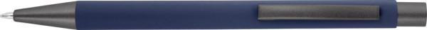 Kugelschreiber mit Softtouch-Oberfläche. Der Knopf, der Clip und Spitze sind farblich zueinander passend. Kann nur in Schwarz, Weiß, Silber und Gold bedruckt werden. Mit blauer Mine.