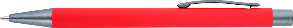 Kugelschreiber mit Softtouch-Oberfläche. Der Knopf, der Clip und Spitze sind farblich zueinander passend. Kann nur in Schwarz, Weiß, Silber und Gold bedruckt werden. Mit blauer Mine.