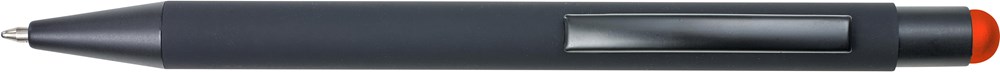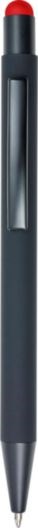 Gummierter schwarzer Kugelschreiber 'Formentera' mit Touch-Funktion. Der Schaft ist unter der Oberfläche in der Farbe des Touchpens lackiert, sodass diese beim Lasern zum Vorschein kommt. Mit blauer Mine.