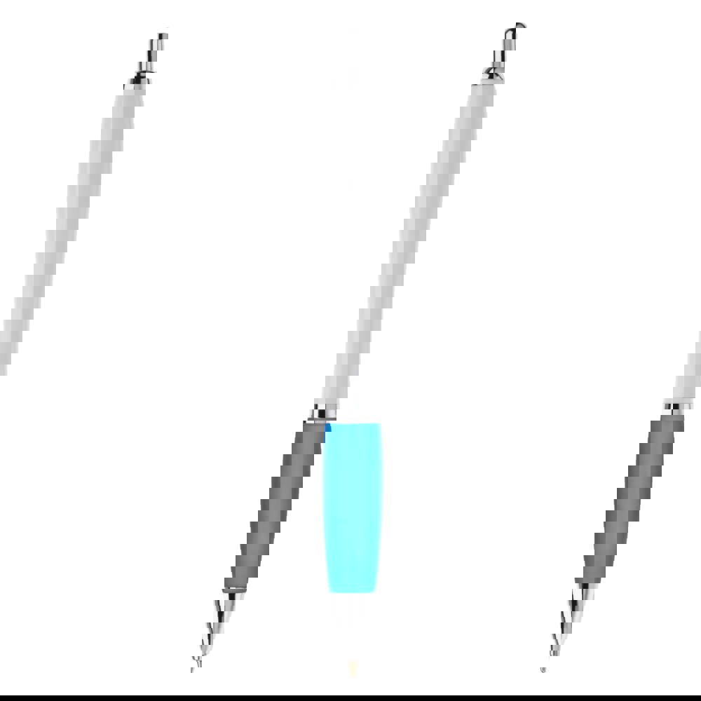 Weißer Kugelschreiber mit Metallclip, metallisierter Drücker, Ring und Spitze. Blauschreibende... mehr