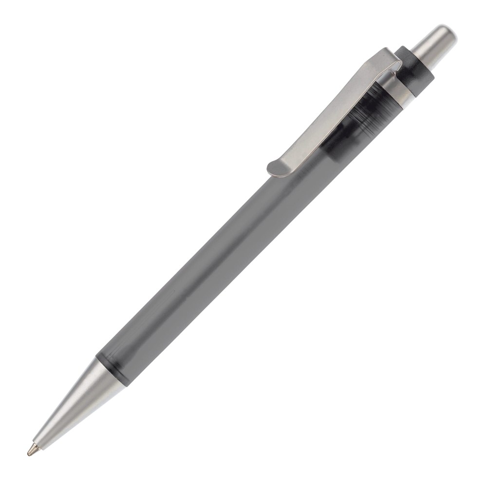 Transparenter Kunststoffkugelschreiber mit Metallclip und blauschreibender mit X20-Mine. mehr