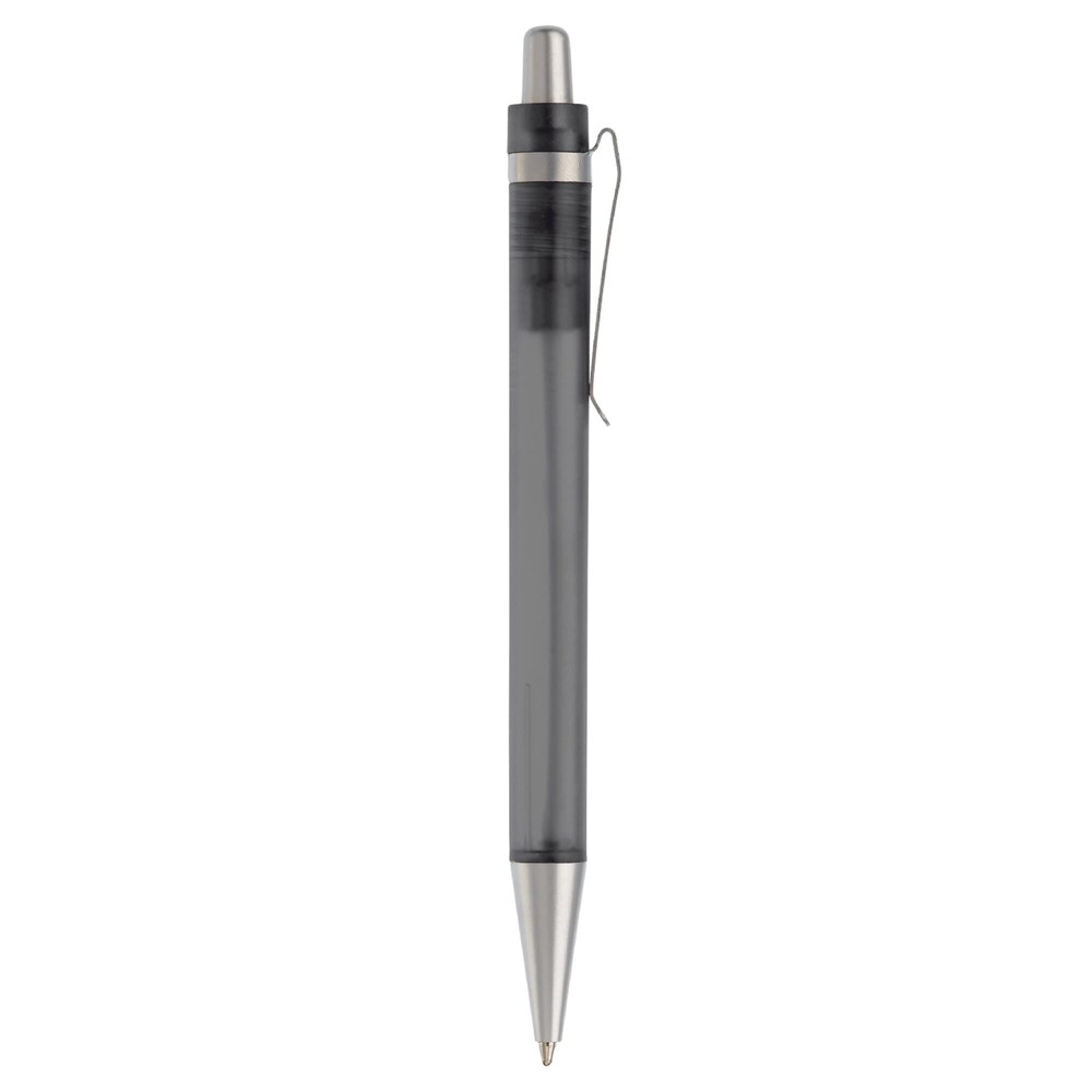 Transparenter Kunststoffkugelschreiber mit Metallclip und blauschreibender mit X20-Mine.