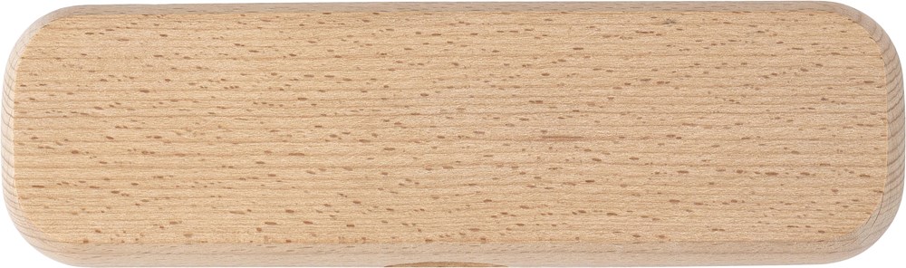 Schreibset aus Buchenholz, bestehend aus Drehkugelschreiber und Rollerball mit Metall-Clip, blauer Mine, verpackt in einer Buchenholz-Geschenkbox. Ausgestattet mit deutscher Dokumententinte.