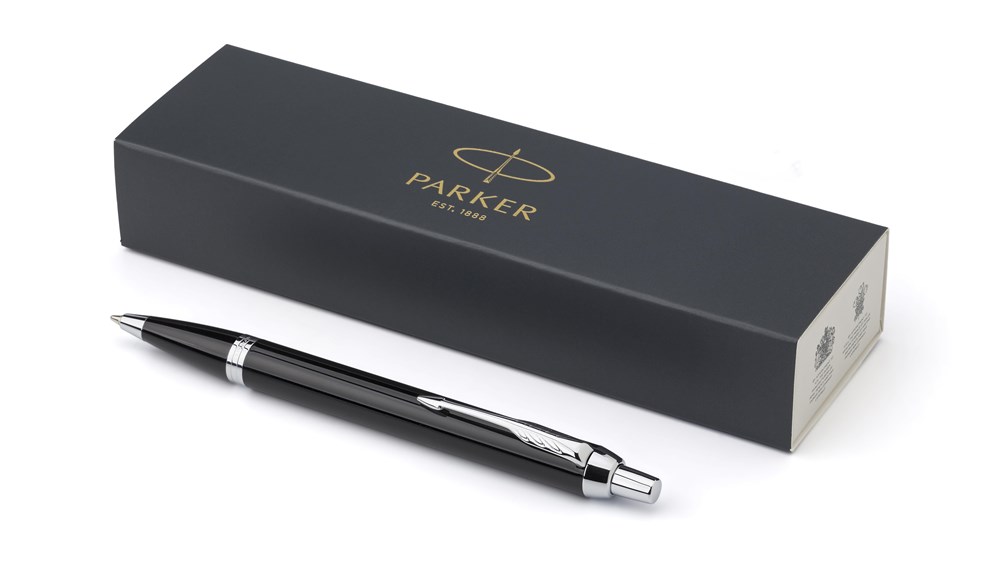 Parker IM Druckkugelschreiber aus lackiertem Messing. Schreibfarbe: blau. Verpackt in einer Geschenkbox.
