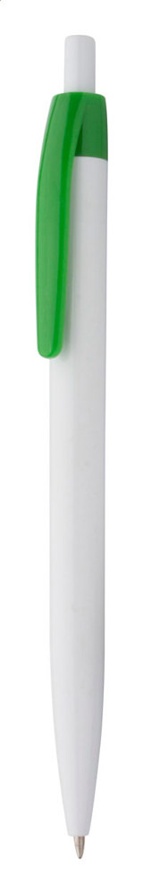 Weißer Kunststoff-Kugelschreiber mit farbigem Clip, blauschreibend. mehr