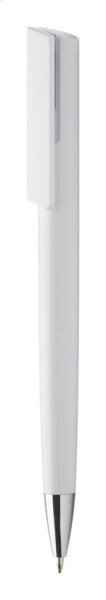 Kunststoff-Kugelschreiber mit verchromter Spitze und Stiftende, blauschreibend.