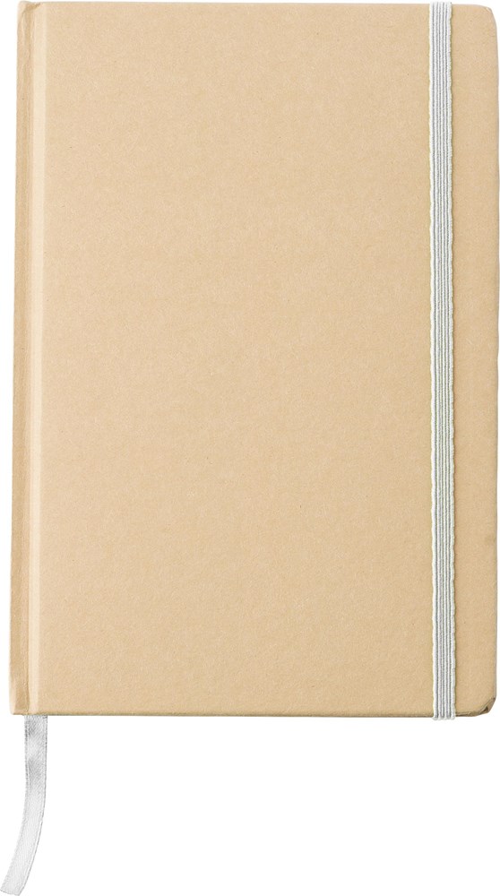 Notizbuch aus recyceltem Karton (A5) mit 160 linierten Seiten. Mit Gummiband zum Verschließen und Lesezeichen mit Band.