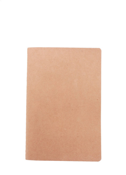 A6 Notizbuch mit genähtem Umschlag aus Recyclingpapier und 60 Blanko-Seiten aus recycletem Kraftpapier.