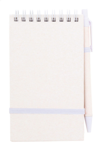 A6 Spiral-Notizblock aus recyceltem Milchkarton mit Hardcover, 70 linierten Seiten, farblich abgestimmten Spiralringen, Gummiband und Stifteschlaufe sowie Kugelschreiber aus recyceltem Milchkarton und recyceltem ABS Kunststoff. Blauschreibend.
