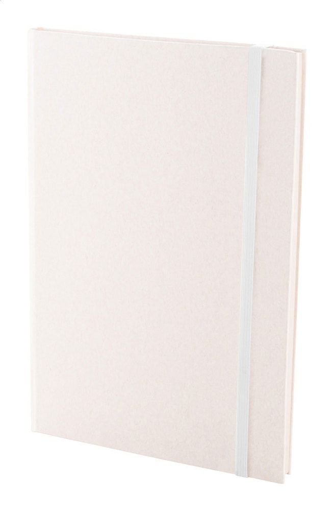 Notizbuch aus recyceltem Milchkartonpapier mit festem Einband, 80 linierten Blättern und farblich passendem Gummiband. Format A5.