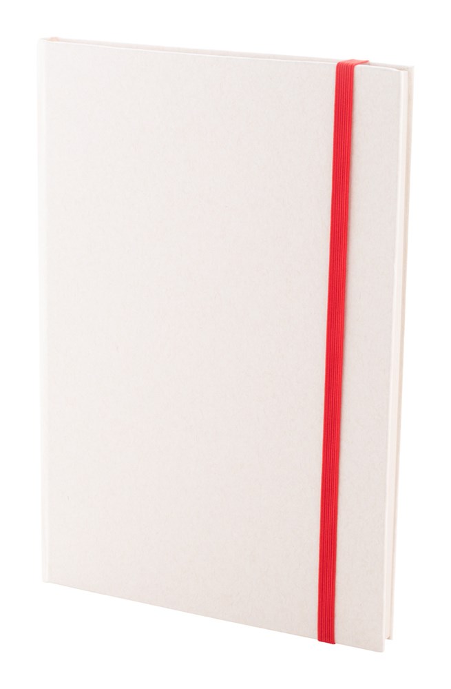 Notizbuch aus recyceltem Milchkartonpapier mit festem Einband, 80 linierten Blättern und farblich passendem Gummiband. Format A5.