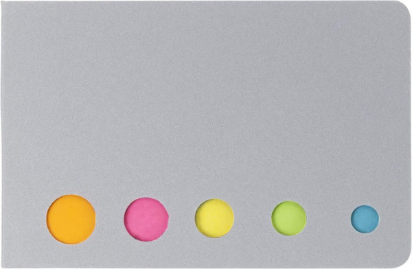 Haftnotizen-Set mit Karton-Umschlag und 5x 20 Haftnotizen. Deckblatt: 300g/m², klebrig: 75g/m².