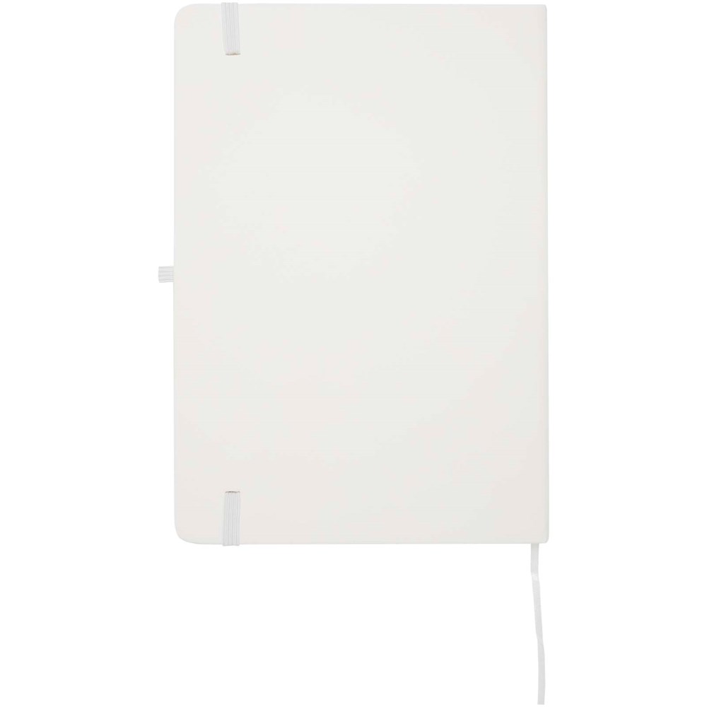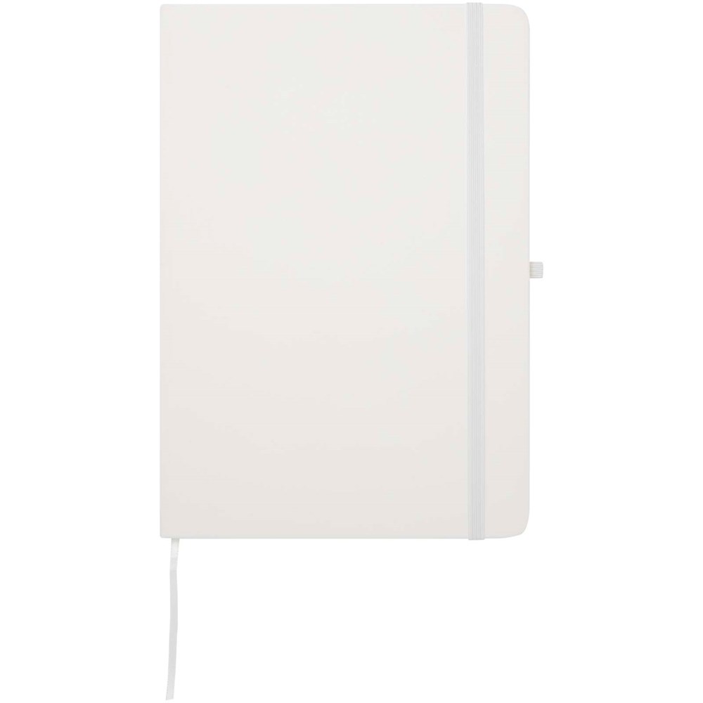 Das Spectrum Plus A5 Hardcover Notizbuch mit abgerundeten Ecken ist nicht nur ein unentbehrlicher Begleiter im Büro, sondern auch ein hervorragender Weg, um für Ihre Marke zu werben. Das Notizbuch aus Karton mit weichem Einband und 80 linierten, cremefarbenen Seiten (70 g/m²) eignet sich ideal für schnelle Ideen oder längere Notizen. Das Notizbuch ist mit Stiftschlaufe, elastischem Verschluss, Lesebändchen und erweiterbarrter Tasche ausgestattet.