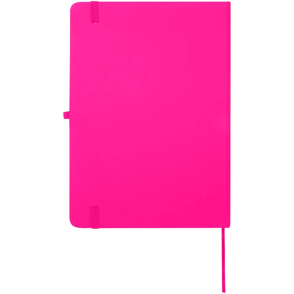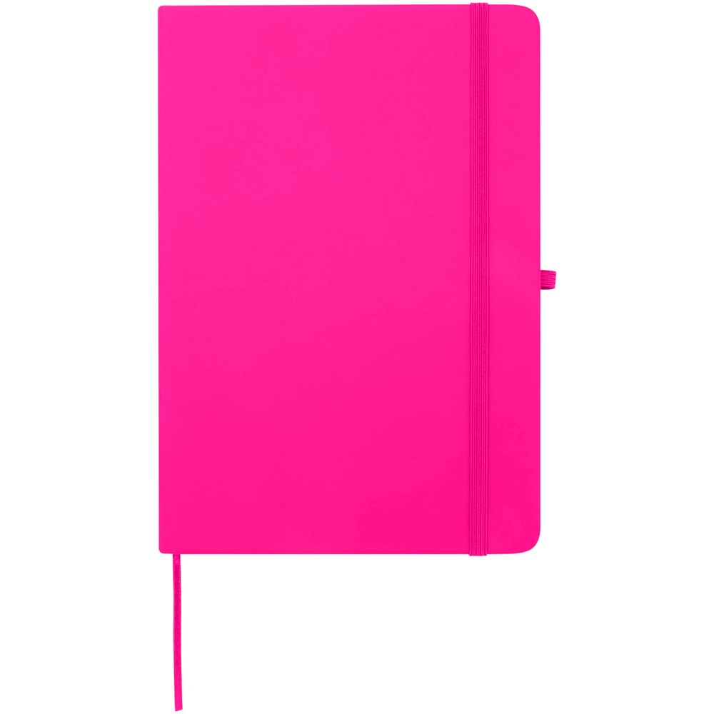 Das Spectrum Plus A5 Hardcover Notizbuch mit abgerundeten Ecken ist nicht nur ein unentbehrlicher Begleiter im Büro, sondern auch ein hervorragender Weg, um für Ihre Marke zu werben. Das Notizbuch aus Karton mit weichem Einband und 80 linierten, cremefarbenen Seiten (70 g/m²) eignet sich ideal für schnelle Ideen oder längere Notizen. Das Notizbuch ist mit Stiftschlaufe, elastischem Verschluss, Lesebändchen und erweiterbarrter Tasche ausgestattet.