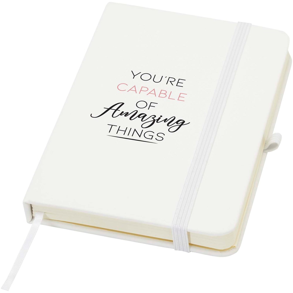 Das Spectrum Plus A6 Hardcover Notizbuch mit abgerundeten Ecken ist nicht nur ein unentbehrlicher Begleiter im Büro, sondern auch ein hervorragender Weg, um für Ihre Marke zu werben. Das Notizbuch aus Karton mit weichem Einband und 80 linierten, cremefarbenen Seiten (70 g/m²) eignet sich ideal für schnelle Ideen oder längere Notizen. Das Notizbuch ist mit Stiftschlaufe, elastischem Verschluss, Lesebändchen und erweiterbarer Tasche ausgestattet.