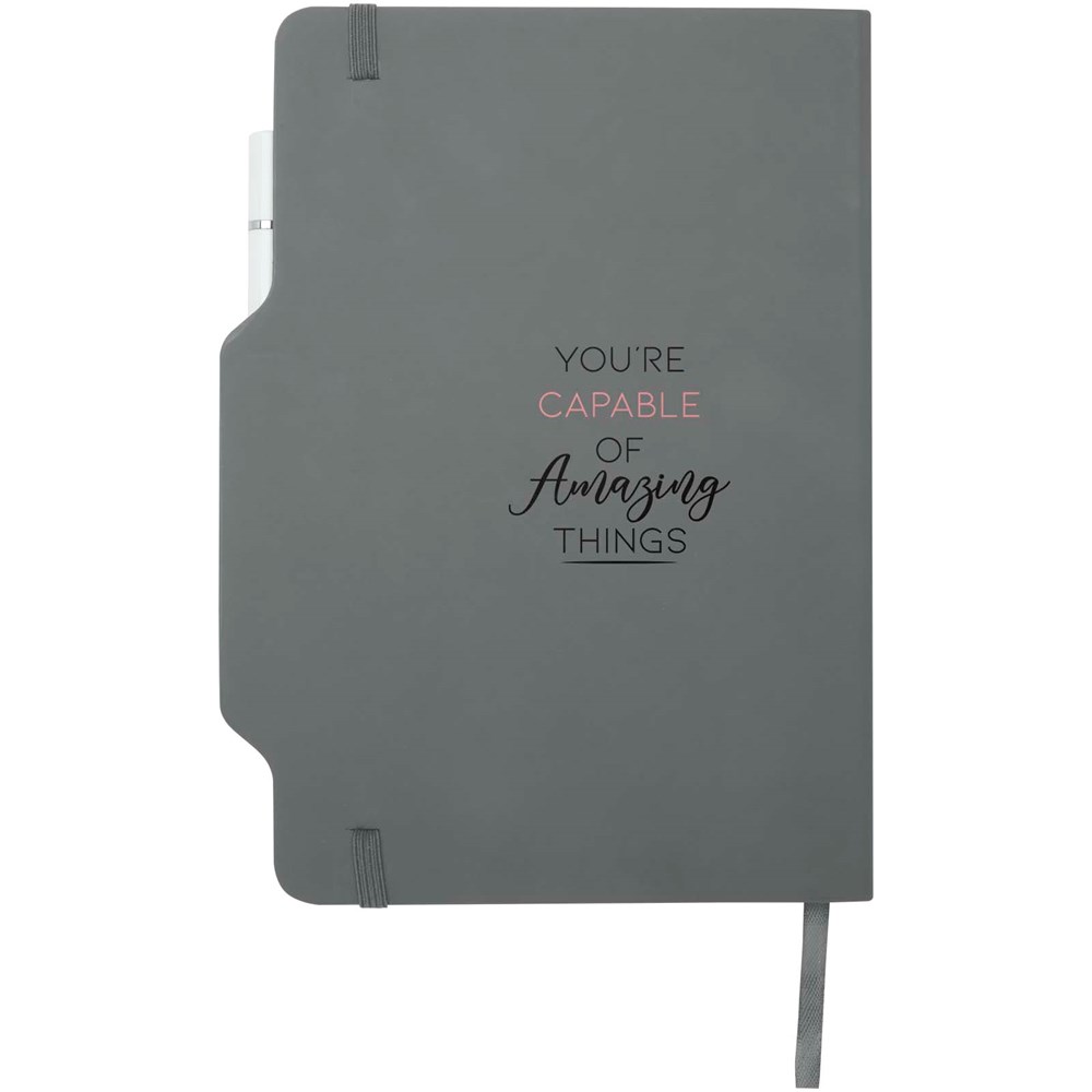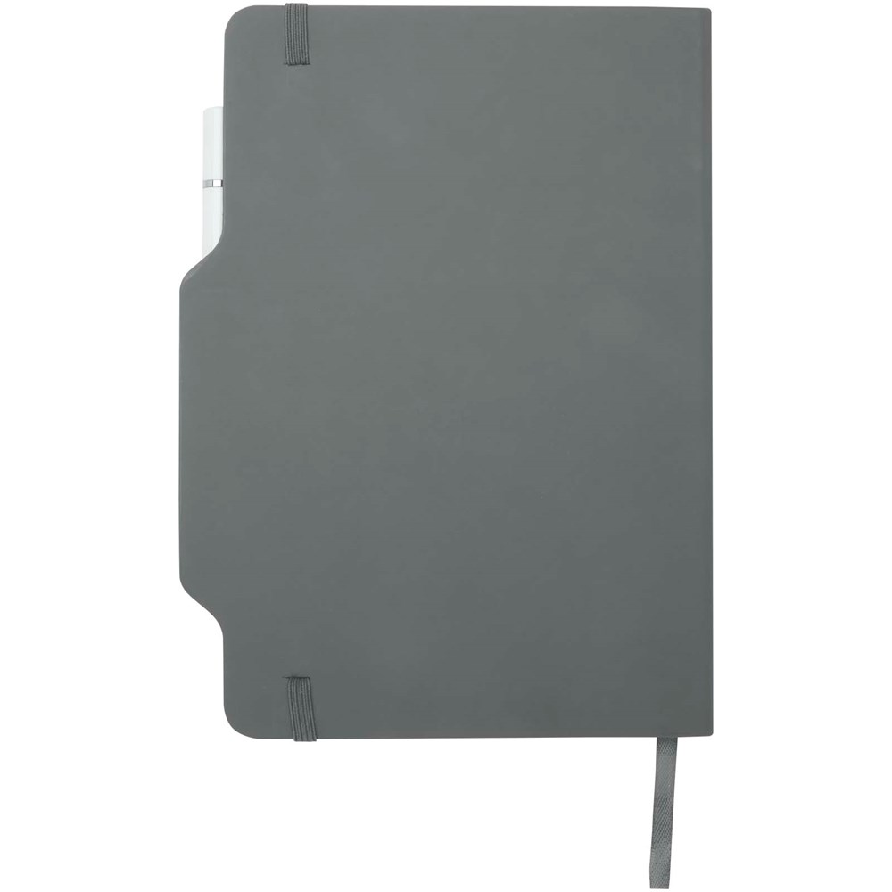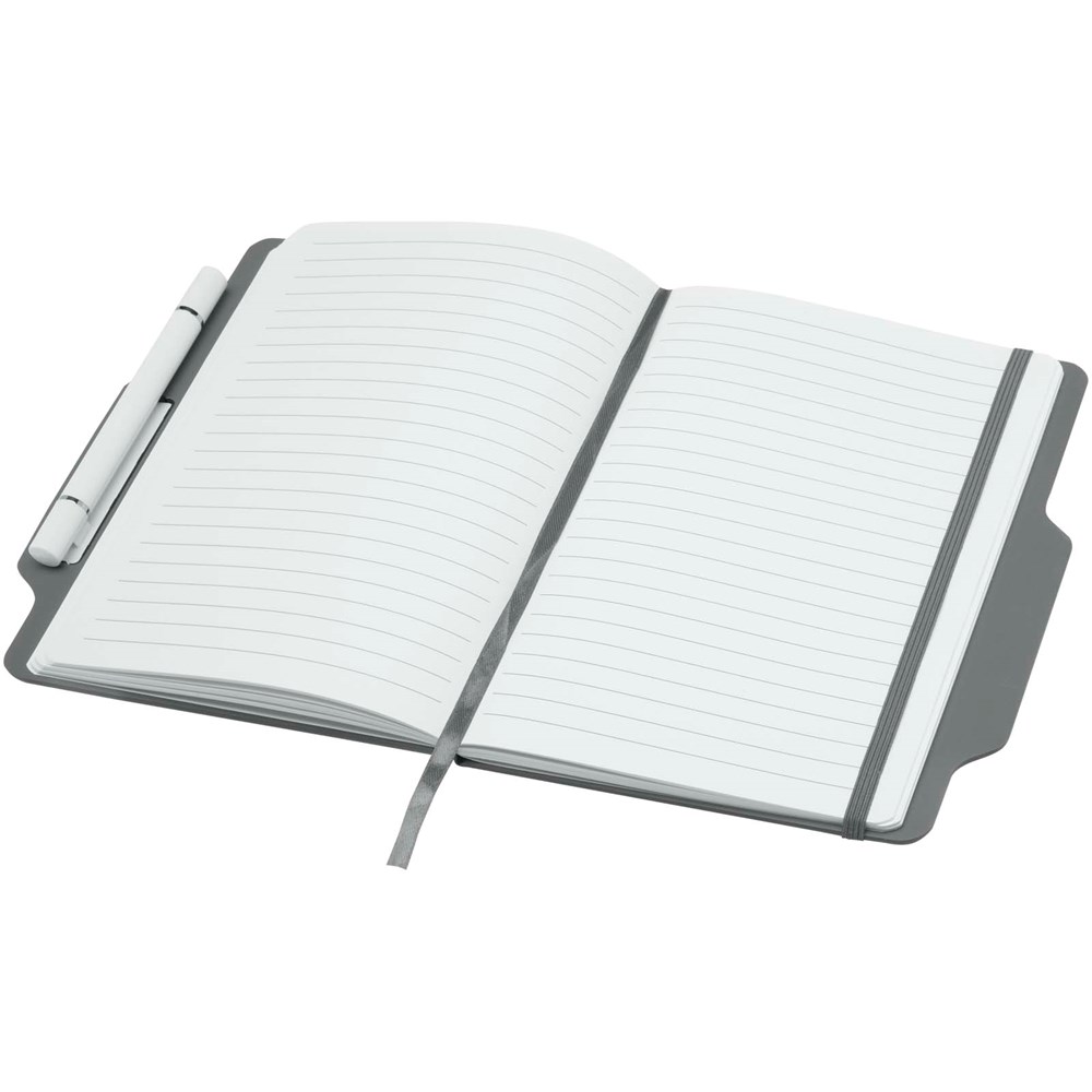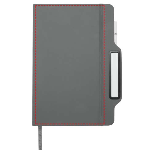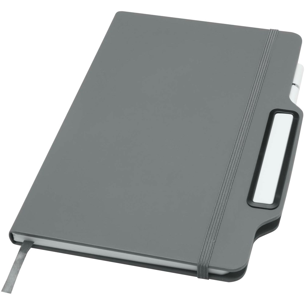 Das Nexus A5 Hardcover Notizbuch mit Stift/Bleistift-Kombi umfasst 80 cremefarbene, linierte Seiten aus 70 g/m² Papier, abgerundete Ecken, einen elastischen Verschluss und ein Lesebändchen. Der Stift hat zwei Köpfe, von denen der eine ein Füller mit schwarzer Tinte und der andere ein Bleistift ist. Schreiblänge des Stiftes: 1000 Meter. Schreibspitze: 1 mm.