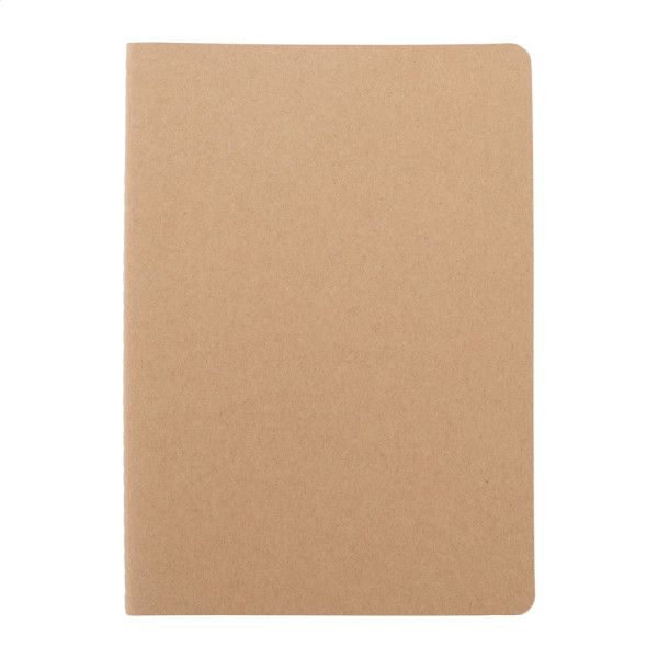 Notizbuch mit genähtem Einband aus recyceltem Papier, 60 linierten Seiten aus recyceltem Kraftpapier. A5-Format.