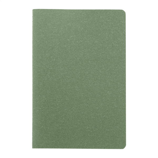 Notizbuch mit genähtem Einband aus recyceltem Papier, 60 linierten Seiten aus recyceltem Kraftpapier. A5-Format.
