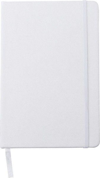 Notizbuch aus rPET und PU (A5) mit Gummiband zum Verschließen und Lesezeichenband. Das Notizbuch hat 80 linierte Seiten aus 70 g/m² Papier.