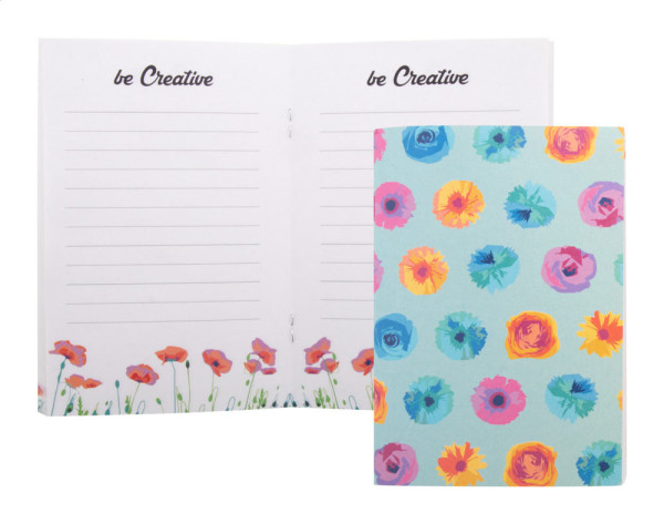 Inidviduelles, mit Recyclingpapier überzogenes Notizbuch mit 32 Blättern aus Recyclingpapier. Größe A6. Der Preis beinhaltet eine vollfarbig bedruckte Außenhülle und einen Vollfarbdruck auf den Innenseiten. Mindestbestellmenge: 100 Stk.