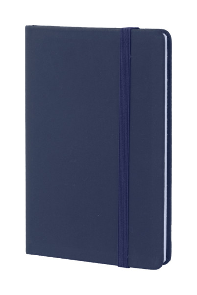 Notizbuch mit Kunstleder-Einband, 100 Seiten (blanko), Lesezeichen und Gummiband. A6-Größe.