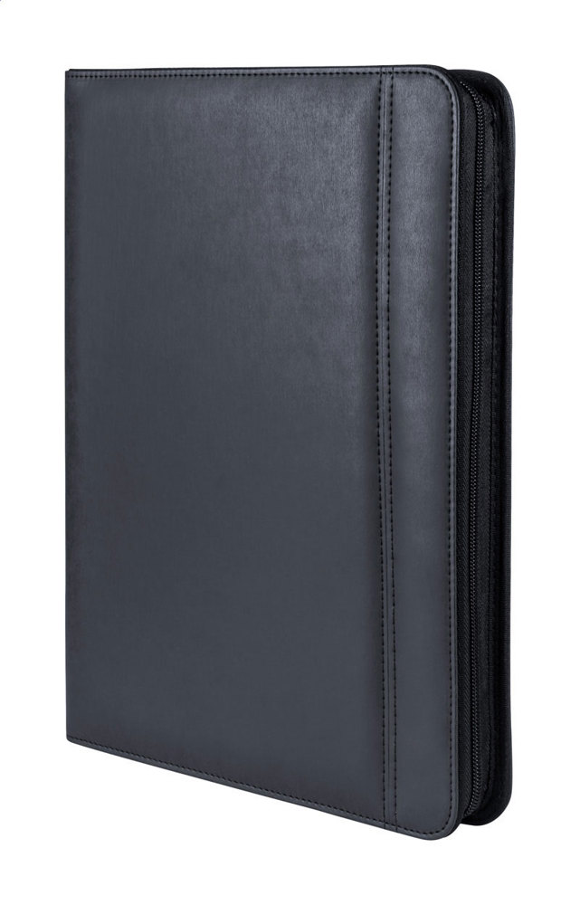 Dokumentenmappe aus Kunstleder mit Powerbank (5000 mAh) Notizblock (20 Blatt), Handy- und Tablethalter. Inkl. USB-Ladekabel.