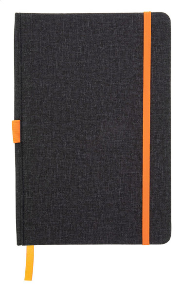 Notizbuch mit strukturiertem Kunstledereinband, farblich aufeinander abgestimmten Lesezeichen, Gummiband und Stiftehalter. 96 Blätter (liniert), Größe A5.