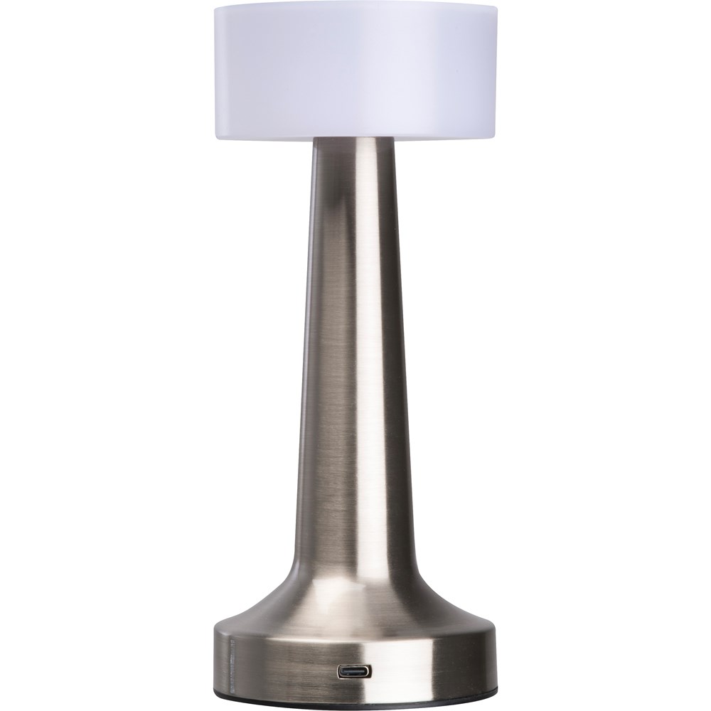 Die Akku-Tischlampe (800mAh, 1,5W) mit 24 LED's (60 Lumen) ist ein elegantes und modernes Accessoire für jedes Ambiente. Mit ihrem hochwertigen Design aus gebürstetem Eisen und einem sanften Lichtschein eignet sie sich perfekt für Büros, Restaurants oder den Wohnbereich. Das Licht ist dimmbar und 3-fach verstellbar per Touch. Ihre Werbung lasern wir oben auf die Lampe. Inkl. USB-C-Ladekabel.