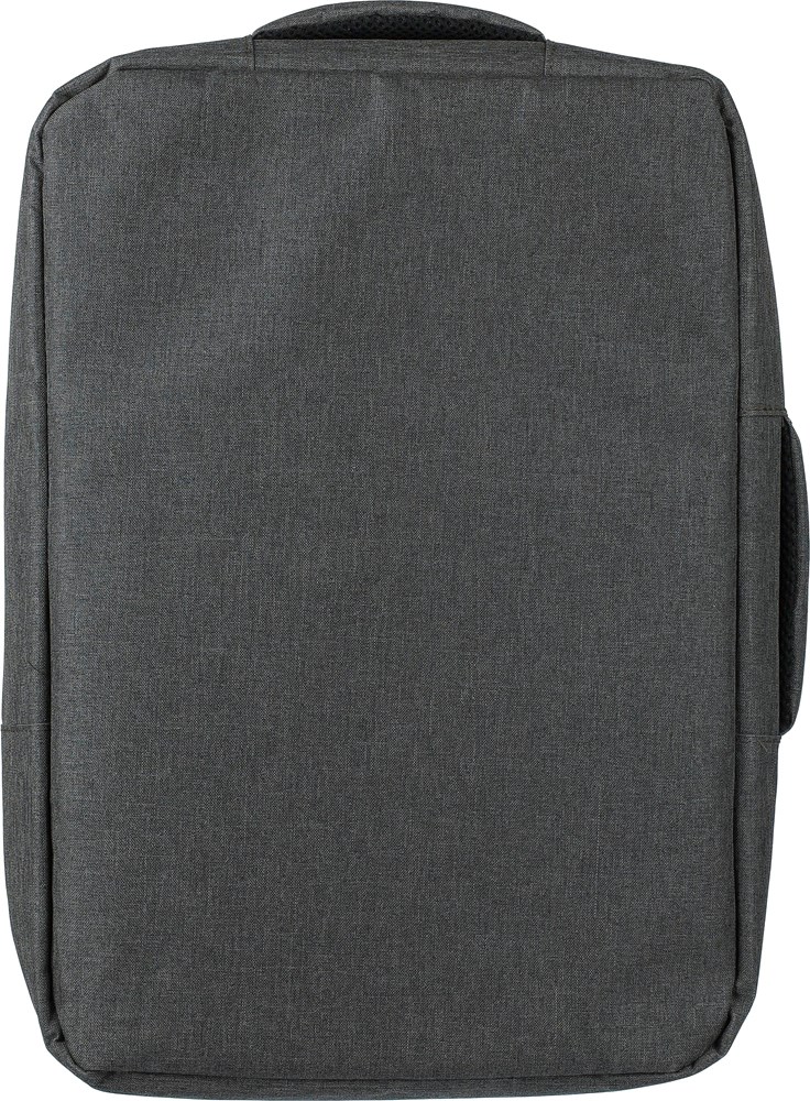 Laptop-Rucksack aus 300D-Polyester mit 210D-RPET-Futter. Er verfügt über ein großes Reißverschlussfach mit mehreren Fächern, ein Laptop-Fach mit Klettverschluss für einen 15””-Laptop und hat ein Fassungsvermögen von 12 Litern. Zur Ausstattung gehören eine verstärkte, belüftete Rückwand, verstellbare Schultergurte, ein seitlicher Tragegriff und ein Trolley-Gurt. Tragkraft: 10 kg.