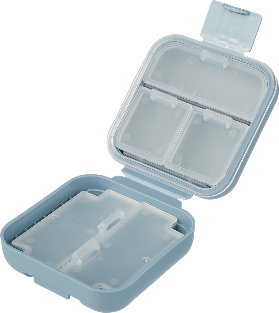 PP- Tablettendose mit 5 einzelnen Fächern, jedes mit eigenem Deckel. Mit Clipverschluss für eine... mehr