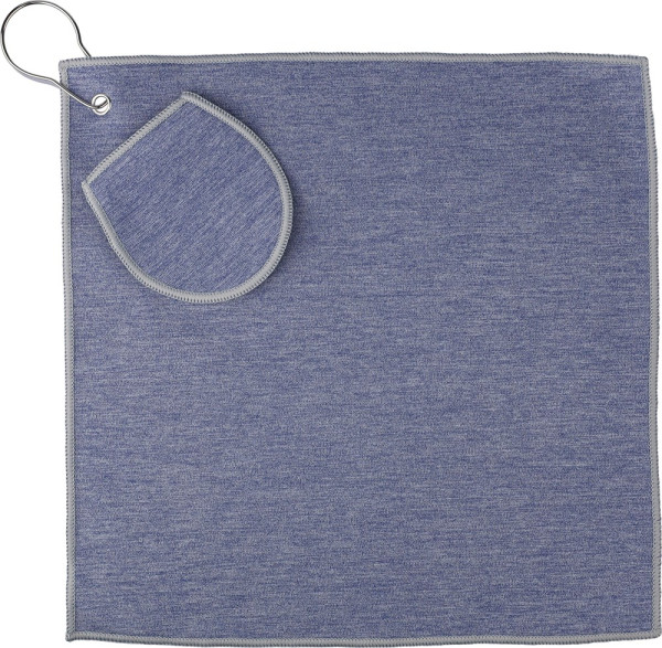 Golfhandtuch aus rPET mit integrierter Golfballtasche, ca. 31 x 31 cm. Mit Metallhaken zur einfachen Befestigung an der Golftasche und rPET-Etikett auf der Innenseite. Maschinenwaschbar (kalt).