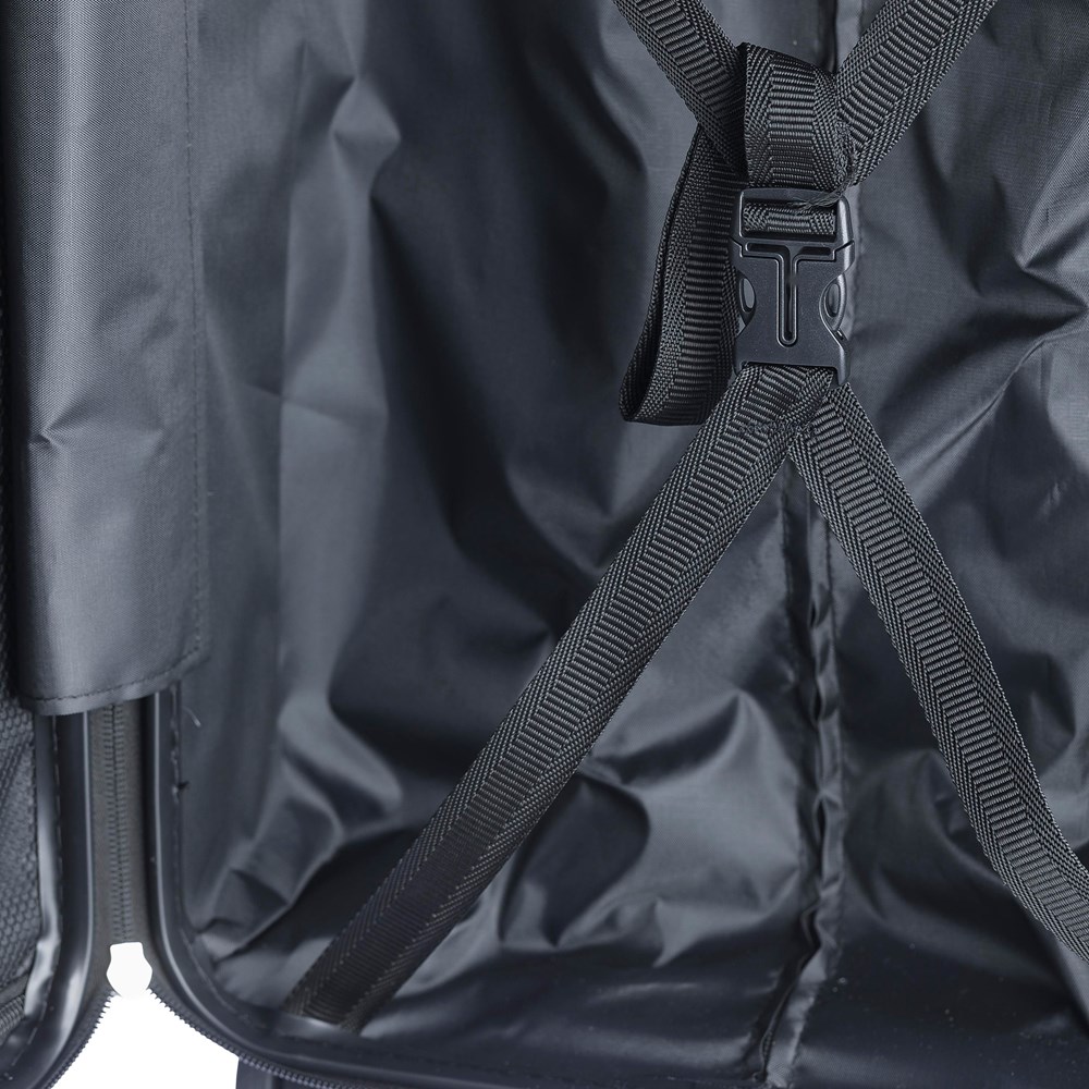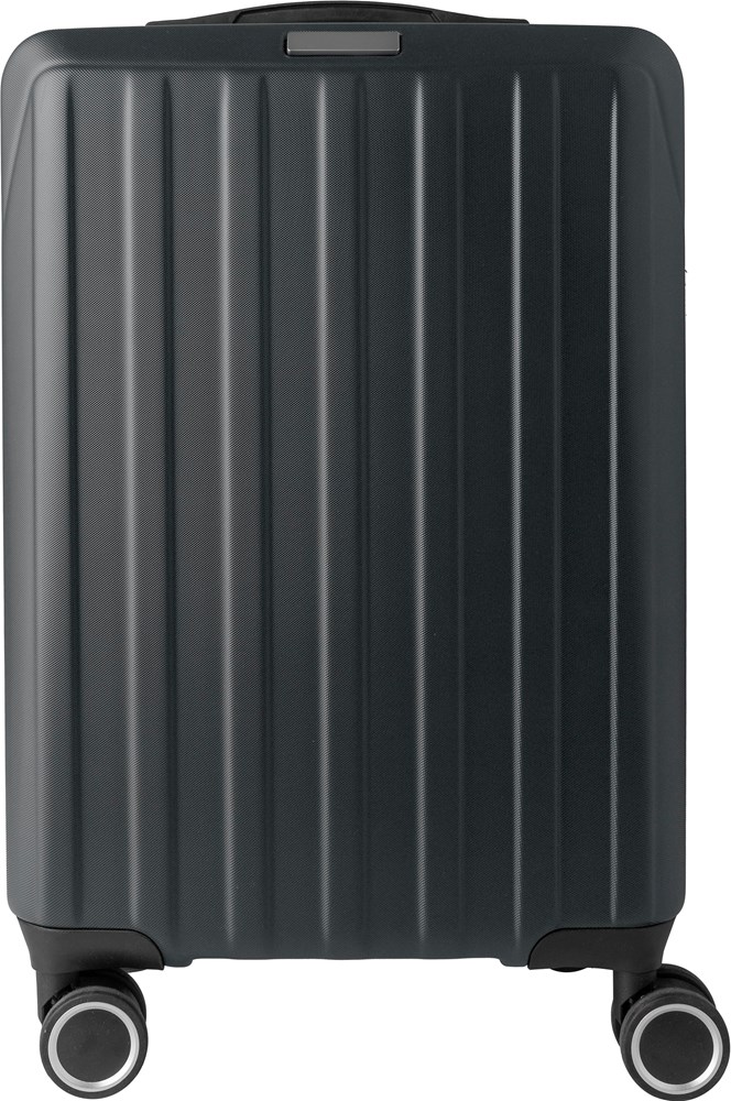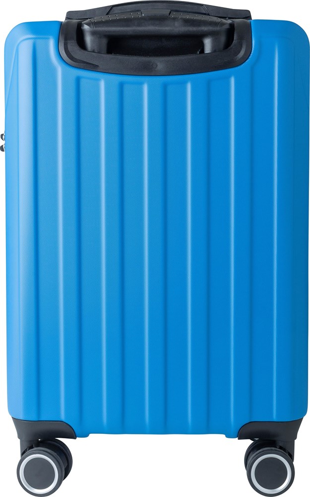 20”” ABS-Koffer mit Hartschaleneinsatz, 8 Lenkrollen (4x2) und dreistufigem Metallgriffsystem. Ausgestattet mit einem oberen Kunststoffgriff, einem Zahlenschloss (nicht TSA) und einer lasergravierten Metallplatte mit 3M-Band. Der Innenraum ist mit 210D-Material ausgekleidet und verfügt über drei Fächer: ein U-förmiges Reißverschlussfach, ein Netzfach und ein X-förmiges Gurtband mit Schnalle. Fassungsvermögen: 30 Liter. Einzeln verpackt in braunem Karton.