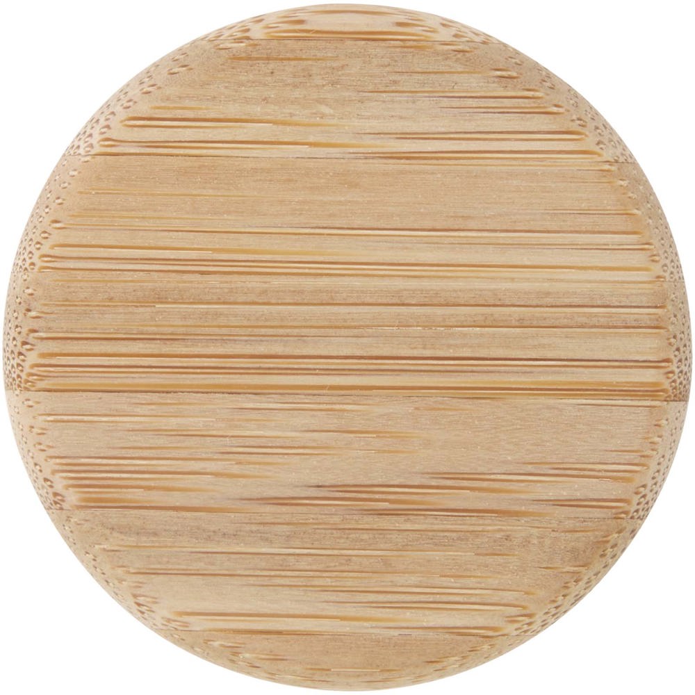 Einwandige Wasserflasche aus Glas mit Drehverschluss aus Bambus, der aus nachhaltigeren und sozial verantwortlicherenn Quellen stammt. Geliefert mit einem praktischen Trageriemen aus Silikon. Verpackt in einer Geschenkbox aus recyceltem Karton. Fassungsvermögen: 500 ml.