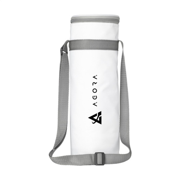 Kühltasche aus 600D-RPET-Polyester. Geeignet für Flaschen bis zu 1,5 Liter. Mit verstellbarer Trageriemen. GRS-zertifiziert. Recyceltes Material insgesamt: 51%.
